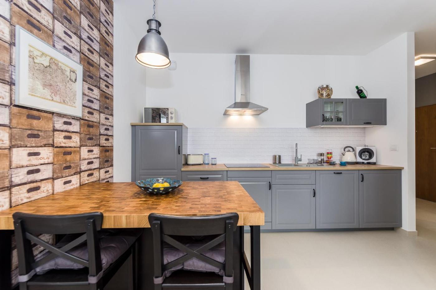 Apartament. This apartment features 1 living room, 1 separate bedroom and 1 bathroom with a walk-in shower and a hairdryer. Guests can make meals in the kitchen that has a stovetop, a refrigerator, a dishwasher and kitchenware. Boasting a terrace with city views, this apartment also features a washing machine and a flat-screen TV with satellite channels. The unit has 2 beds. Apartament - 4 osobowy. Powierzchnia pokoju ok.: 45 mkw.