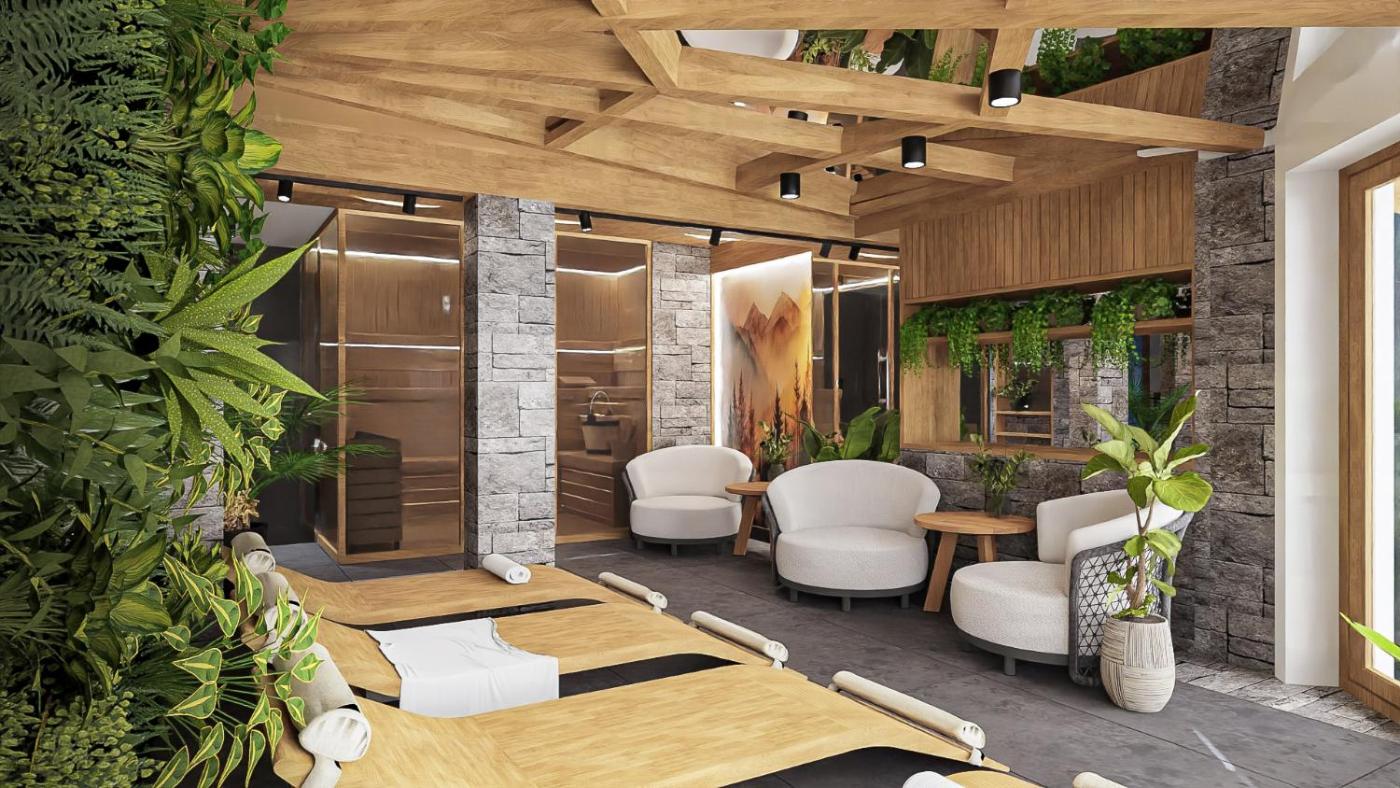 Pokój czteroosobowy z prywatną łazienką. The quadruple room offers a seating area, a wardrobe, a terrace with garden views as well as a private bathroom boasting a walk-in shower. Pokój Czteroosobowy - 4 osobowy. Powierzchnia pokoju ok.: 25 mkw. ;