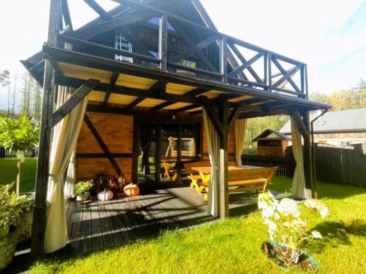 Domek z 5 sypialniami. This holiday home features a fireplace. Guests will find a stovetop, a refrigerator, a dishwasher and kitchenware in the well-fitted kitchenette. The holiday home also provides guests with a barbecue. The holiday home provides a washing machine, a private entrance, a terrace with garden views as well as a shared bathroom featuring a bath. The unit offers 7 beds. Dom wakacyjny - 10 osobowy. Powierzchnia pokoju ok.: 80 mkw.